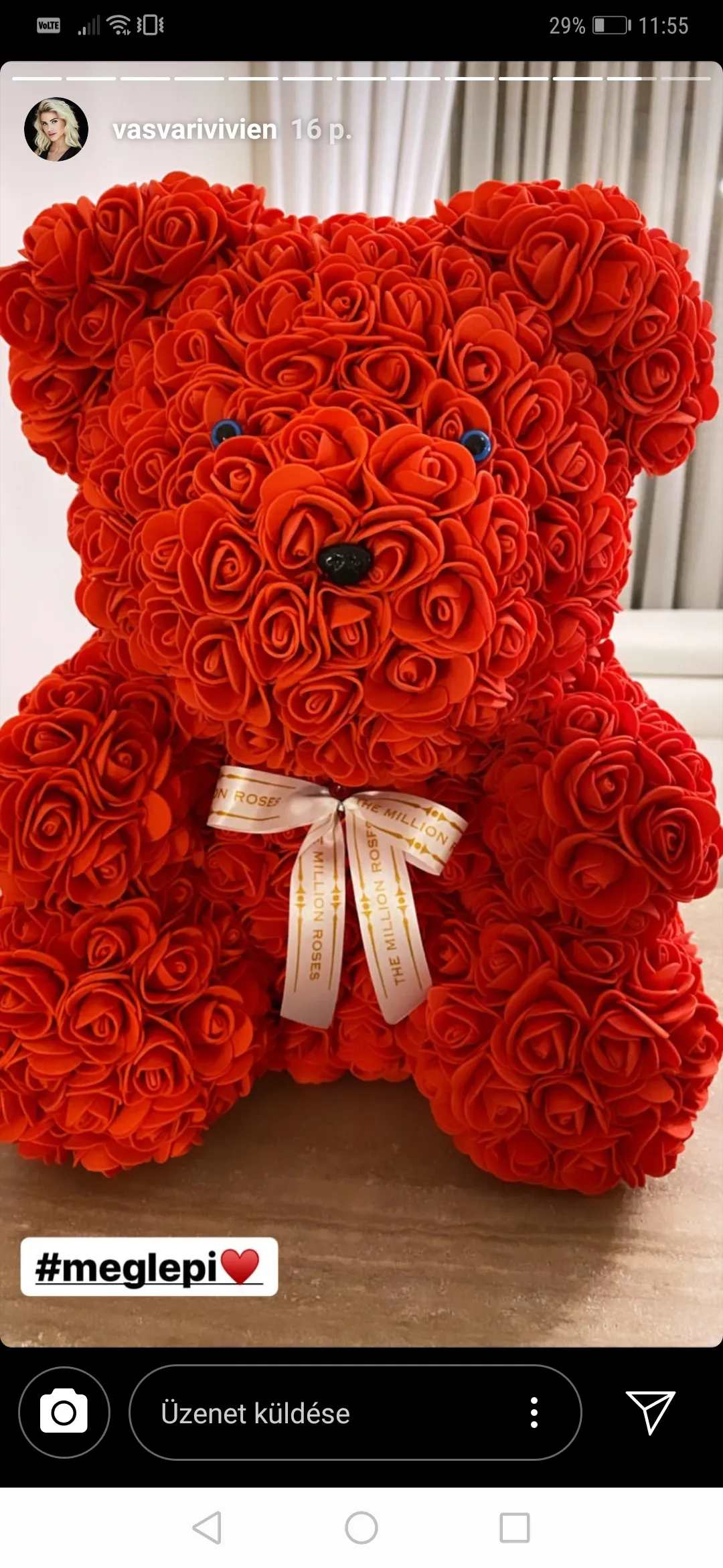 Az Instagramon büszkélkedett el a hatalmas rózsából kirakott macival, ami minden bizonnyal méregdrága lehetett.