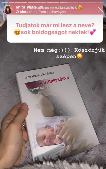 „Mindenképpen tervezem a kismamajógát. Úgy volt, hogy januártól elkezdem, de néhány dolog közbeszólt. Amint erőt veszek magamon, el fogok járni” – magyarázta Anita, aki azt is megsúgta, hogy egyelőre nem tudják még, milyen nevet adnak majd a legkisebb Királynak, ezért vásárolt is egy könyvet, amiben az összes anyakönyveztethető keresztnév megtalálható.