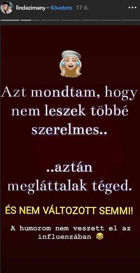 „A humorom nem veszett el az influenzában” -írta Linda, aki fotókat is csatolt.