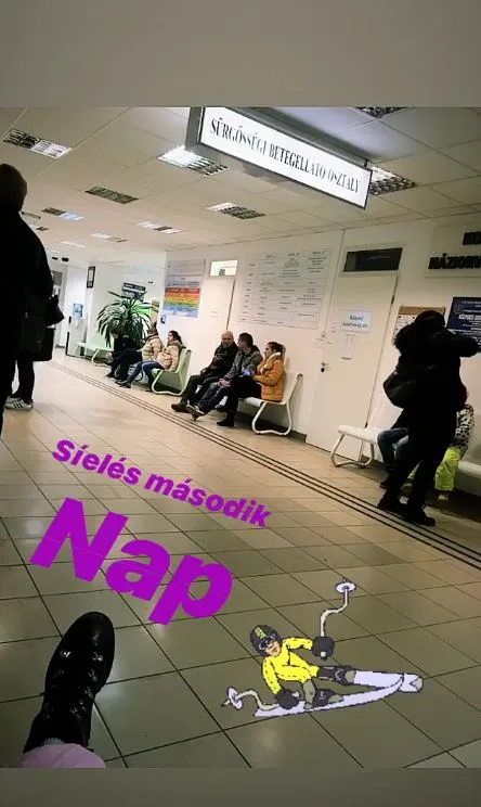 A Karinthy színház színésznője az Instagram-oldalára töltött fel egy fotót, amiből jól kivehető, hol a sürgősségi betegellátó osztályon várakozott, és csupán annyit írt: „síelés, második nap.” A lábát pedig a mellette lévő széken pihentette, így sokan azt a következtetést vonták le, hogy a lába sérült meg.