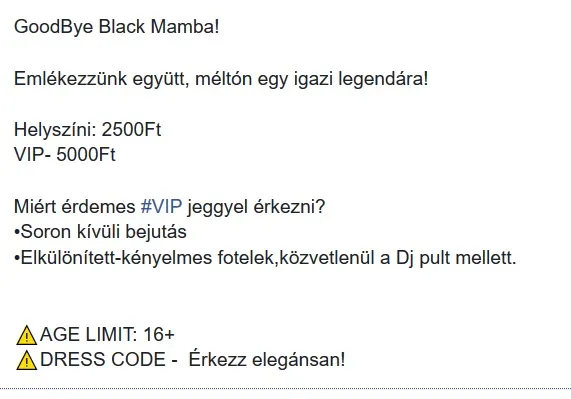 Kobe Bryant in Paradise – ezzel a címmel szerveznek emlékestet február 15-én az egyik budapesti szórakozóhelyen Kobe Bryant emlékére. Az eseményt természetesen a Facebookon is meghirdették, remélve, hogy így még nagyobb lesz az érdeklődés, és több jegy fogy. A kezdeményezés óriási vihart kavart, több Kobe-rajongó is mélységesen felháborodott, nyerészkedést és kegyeletsértést emlegetett!