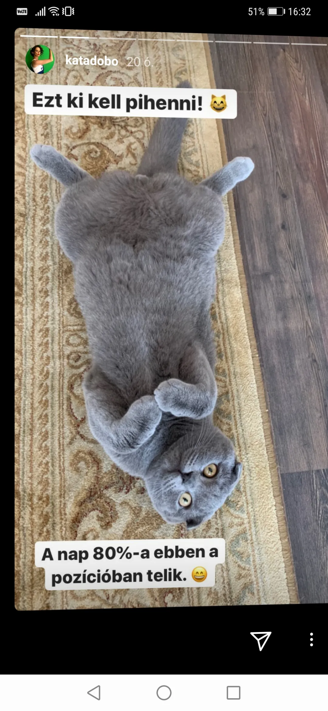 Kata lencsevégre kapta cicáját, annak kedvenc pozitúrájában. Ennél aranyosabbat ma már biztos nem látunk.