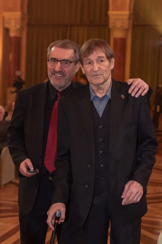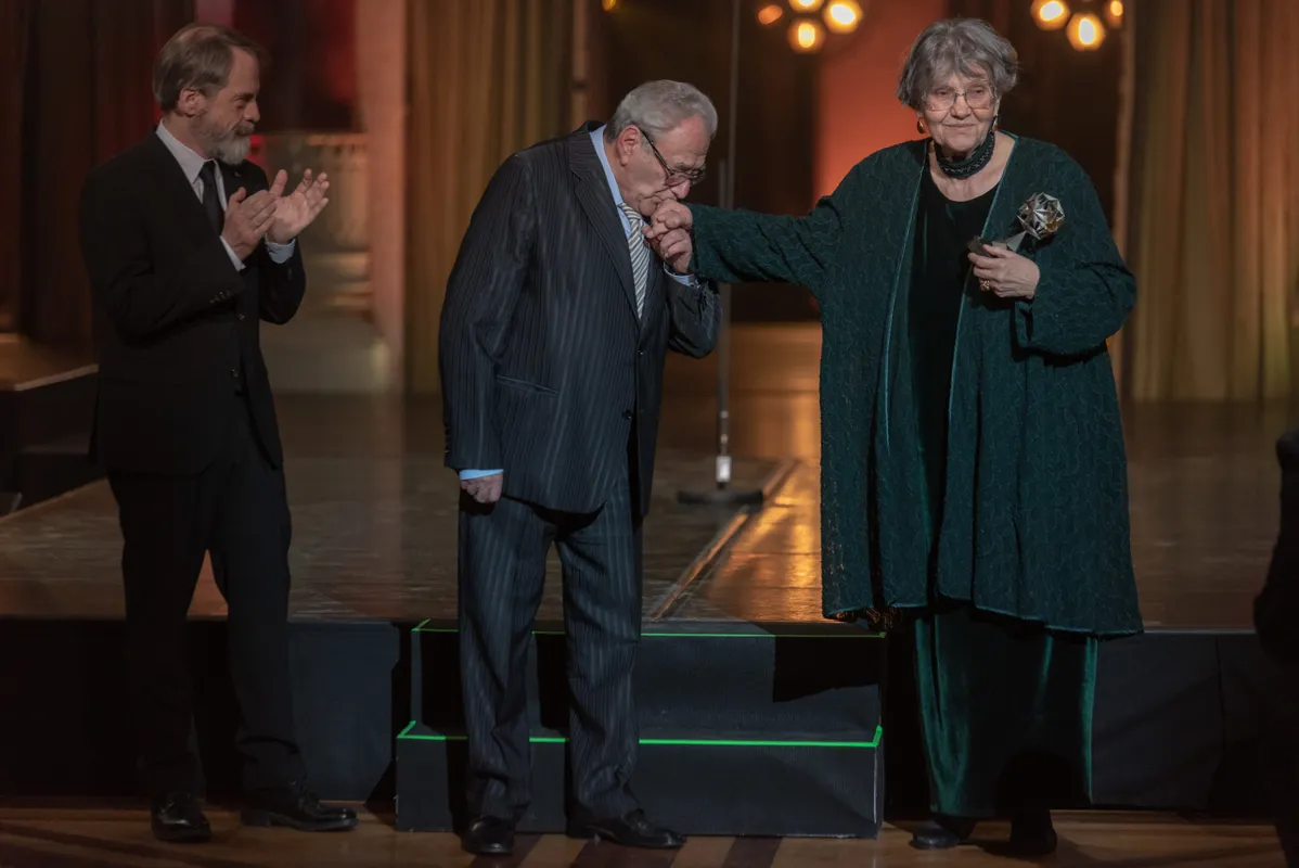 Cserhalmi György az utóbbi időben sokat gyengélkedett, a díjat viszont széles mosollyal és boldogan vette át.