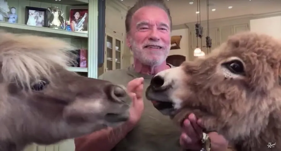 A jótékonykodása mellett szó volt még a két háziállatáról, Luluról, a törpeszamárról és Whiskey-ről, a póniról, ugyanis pont őket etette az interjú közben Schwarzi. A nagypapai örömök elé néző színész pedig azt is elmesélte, hogy a ló gyakran odacsinál a konyha közepére, mert nem lehet megtanítani a szobatisztaságra.