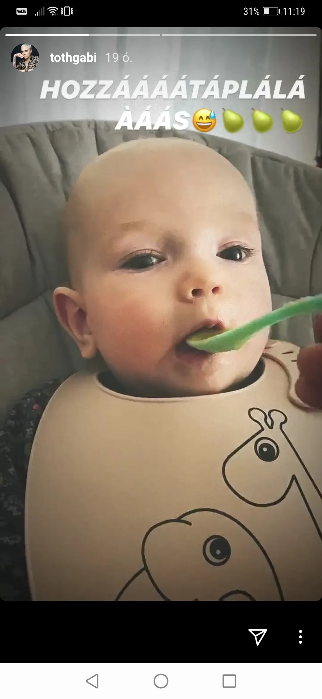 Az énekesnő kiposztolta ugyanis, hogy elkezdődött a hozzátáplálás. Mostantól az anyatej mellett más finomságokat is eszegethet a kislány. A kép láttán nagyon úgy fest, hogy a körtepép kifejezetten ízlik Hannarózának.