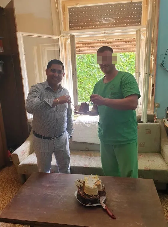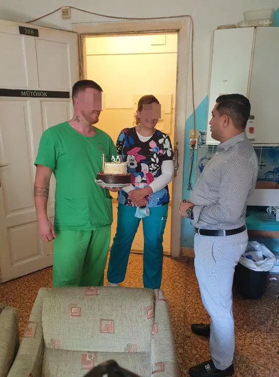 „Roland kedvese keresett meg és állt elő ezzel az ötlettel. Bár ilyen felkéréseknek alapvetően nem szoktam eleget tenni, most azonnal éreztem, hogy kivételt kell tennem. Mindenképpen személyesen szerettem volna kifejezni a hálámat és az elismerésemet Rolandnak, hiszen tudom, hogy műtősként mennyi mindent tesz az emberekért, különösen ebben a vírusos időszakban. Minden tiszteletem az egészségügyben dolgozóké” – kezdte a Ripost-nak Grófo, aki egy tortát is vitt Rolandnak.