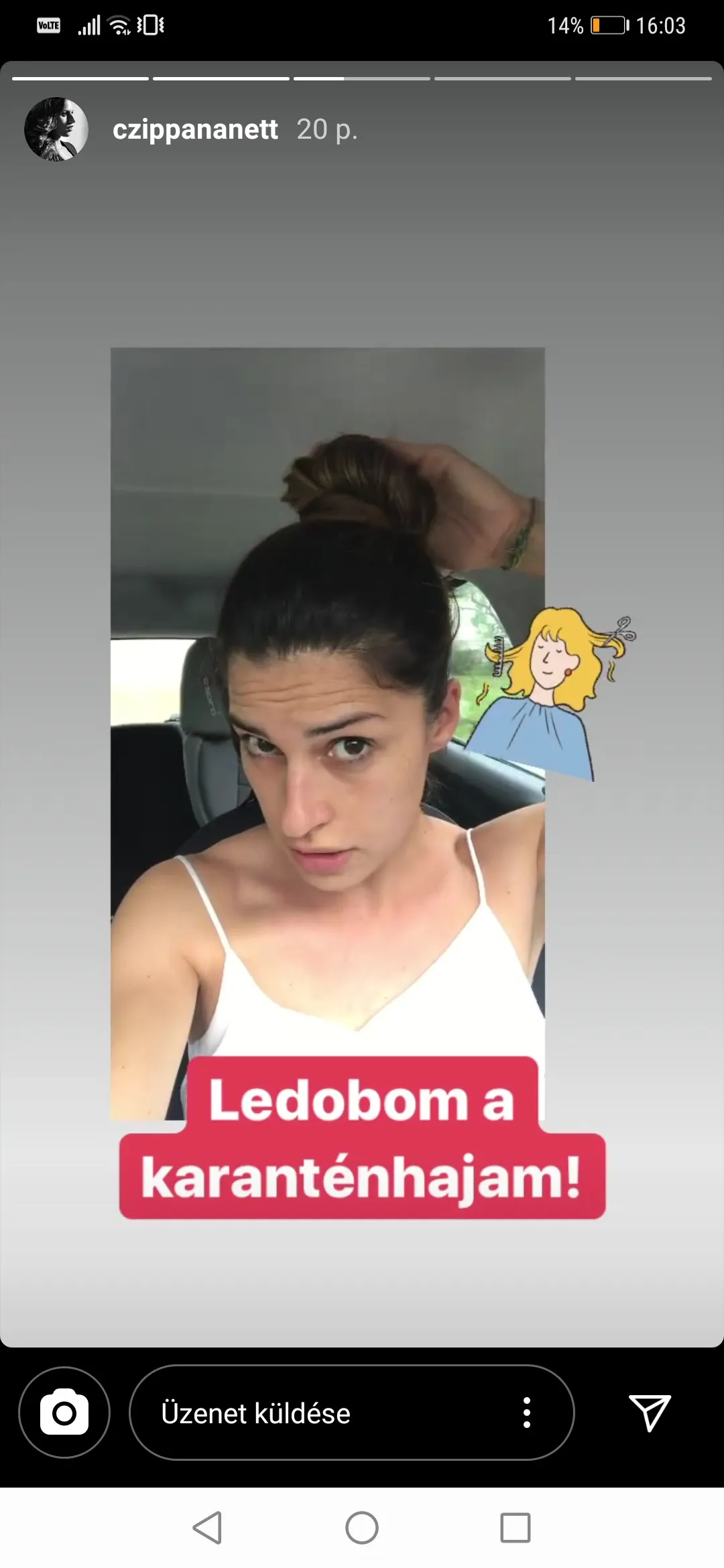 Pontosan 4 hónapot kellett várnia. Az Instagramon boldogan számolt be arról, hogy végre megújul a külseje és ledobja a karanténhaját.