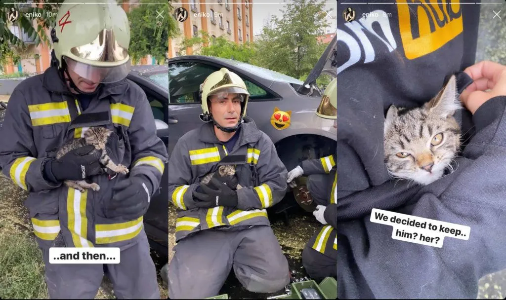 A lánglovagok szerencsére azonnal a bajba jutott cirmos segítségére siettek, a modell pedig az Instagramon közvetítette a mentési folyamatot.