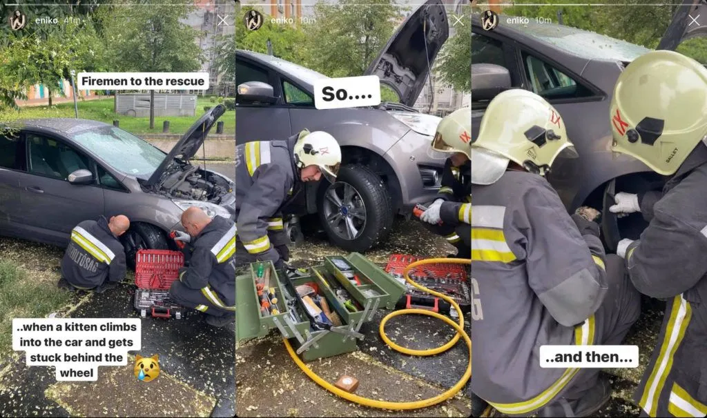 Mihalik Enikő nem teketóriázott, azonnal hívta a tűzoltókat, amikor meglátta, hogy egy kiscica egy autó kerekei mögé szorult.
