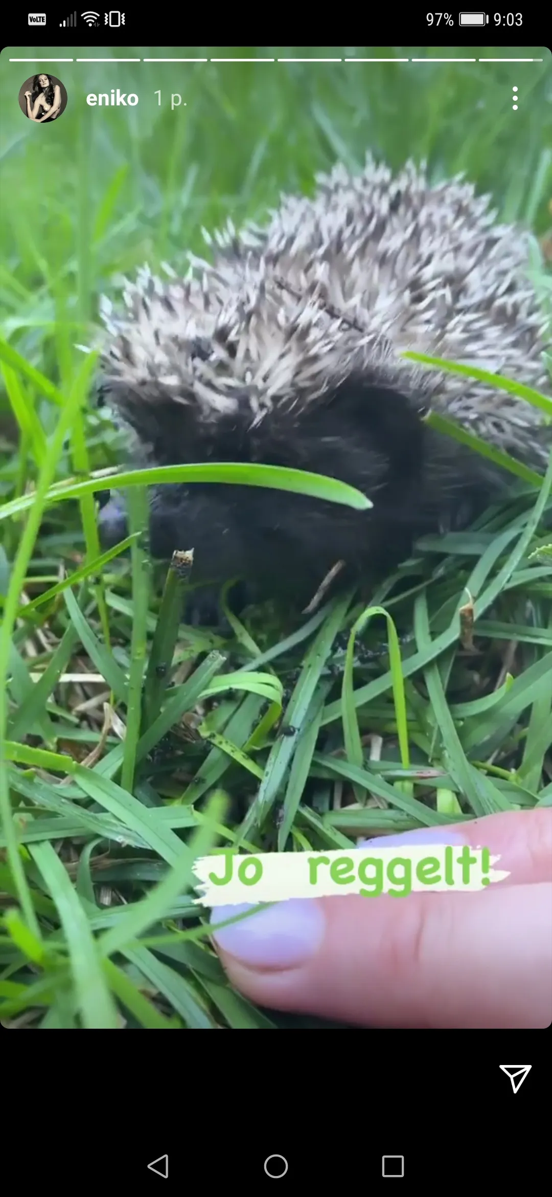 De még milyen közel... Szombat reggel egy kis süni lapult meg a kertben, amit Enikő meg is örökített a követői számára.