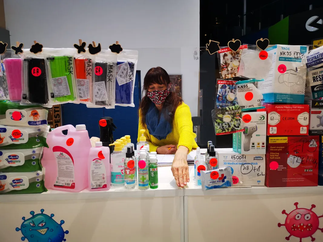 A színésznő az egyik fővárosi bevásárlóközpont maszkos-standjánál dolgozik, jóllehet, az arc kötelező eltakarása miatt először keveseknek tűnhet fel, hogy Xantus Barbara áll velük szemben.