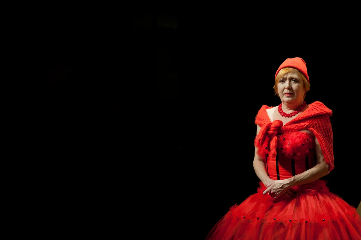 Börcsök Enikõ az osztrák Elfriede Jelinek Téli utazás címû drámájának próbáján a Vígszínház házi színpadán 2014. január 3-án. A darabot Zsótér Sándor rendezésében 2014. január 4-én mutatják be.