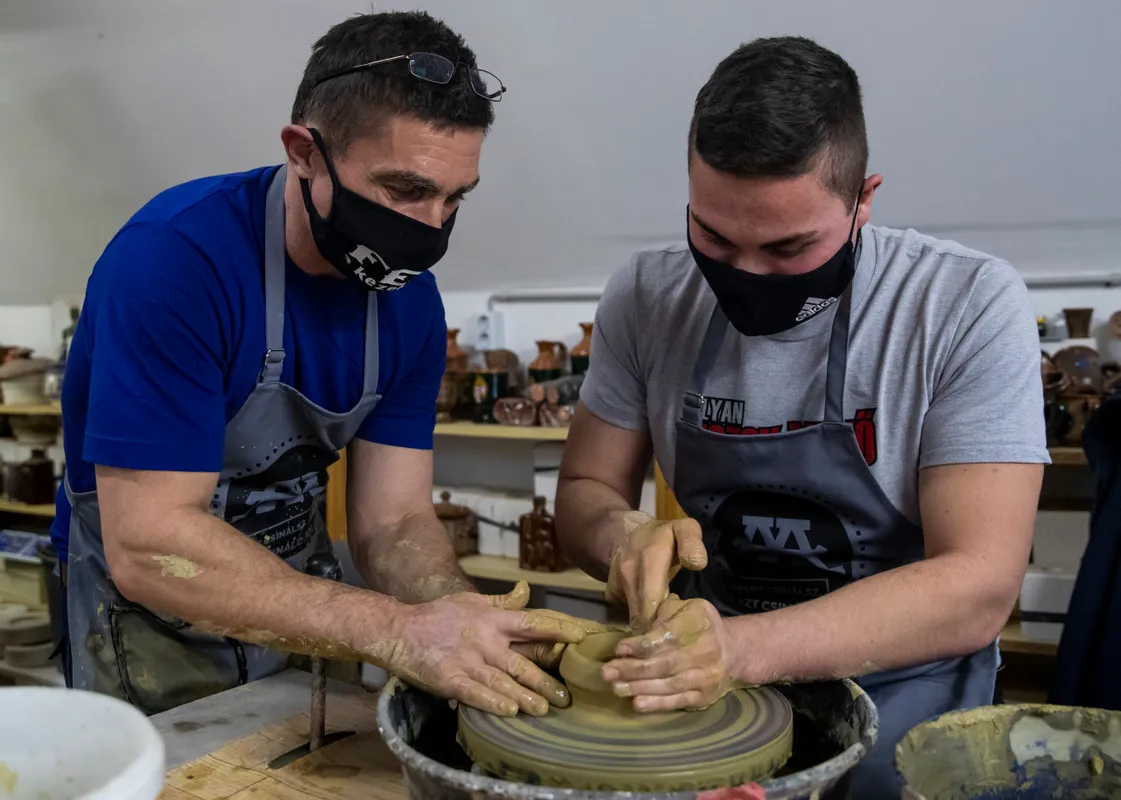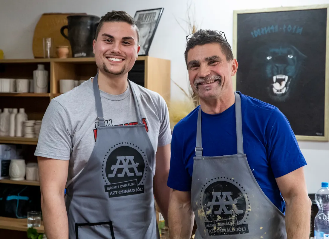 Böhm Alex édesanyjával érkezett a Viszkis búbánatvölgyi műhelyébe, ahol a kerámia rejtelmeibe beavató foglalkozás szünetében a Ripost-nak elmesélték, milyen meghatározó élményben volt részük 22 évvel ezelőtt Attila miatt.