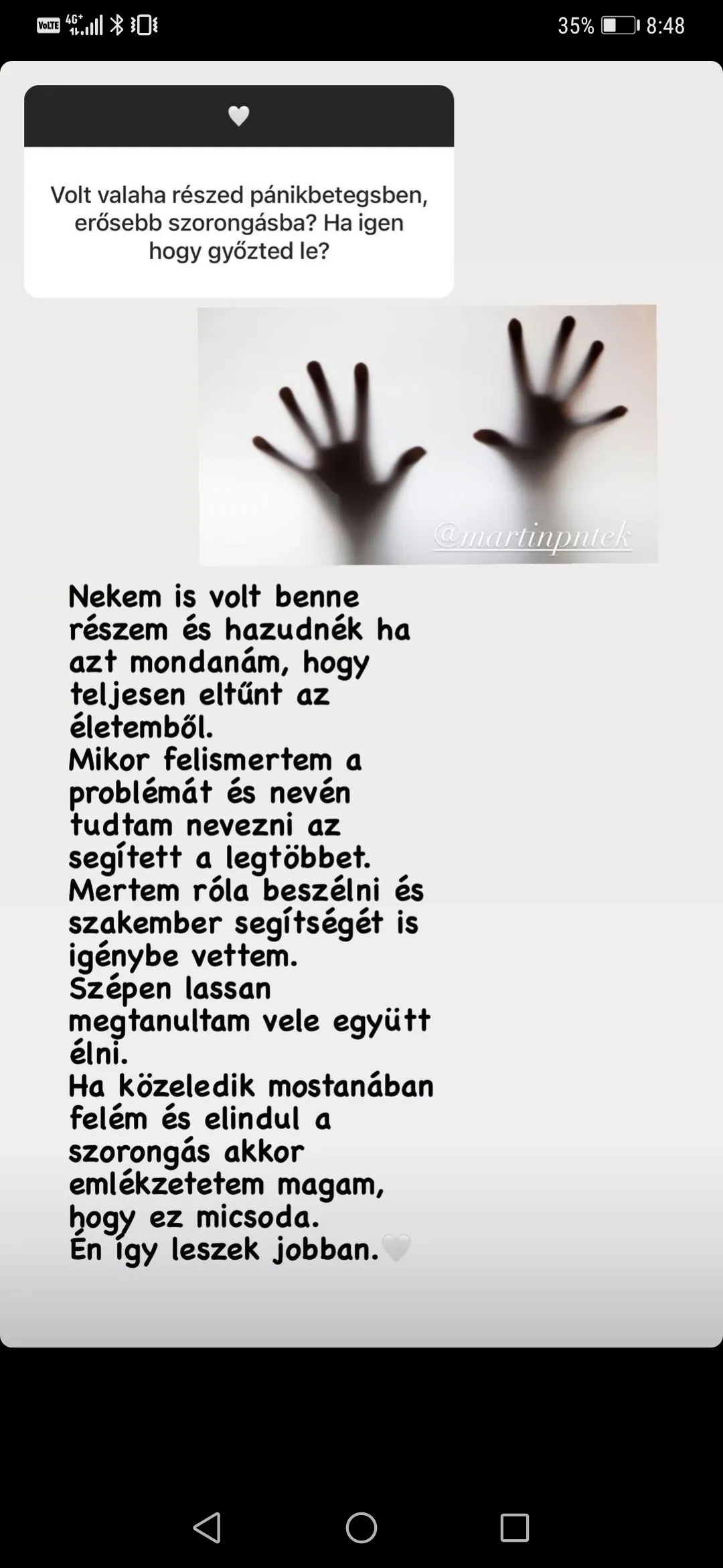 Ma már szerencsére jól van, csak ritkán tör rá a szorongás, de ez annak köszönhető, hogy korábban szakember segítségét kérte.