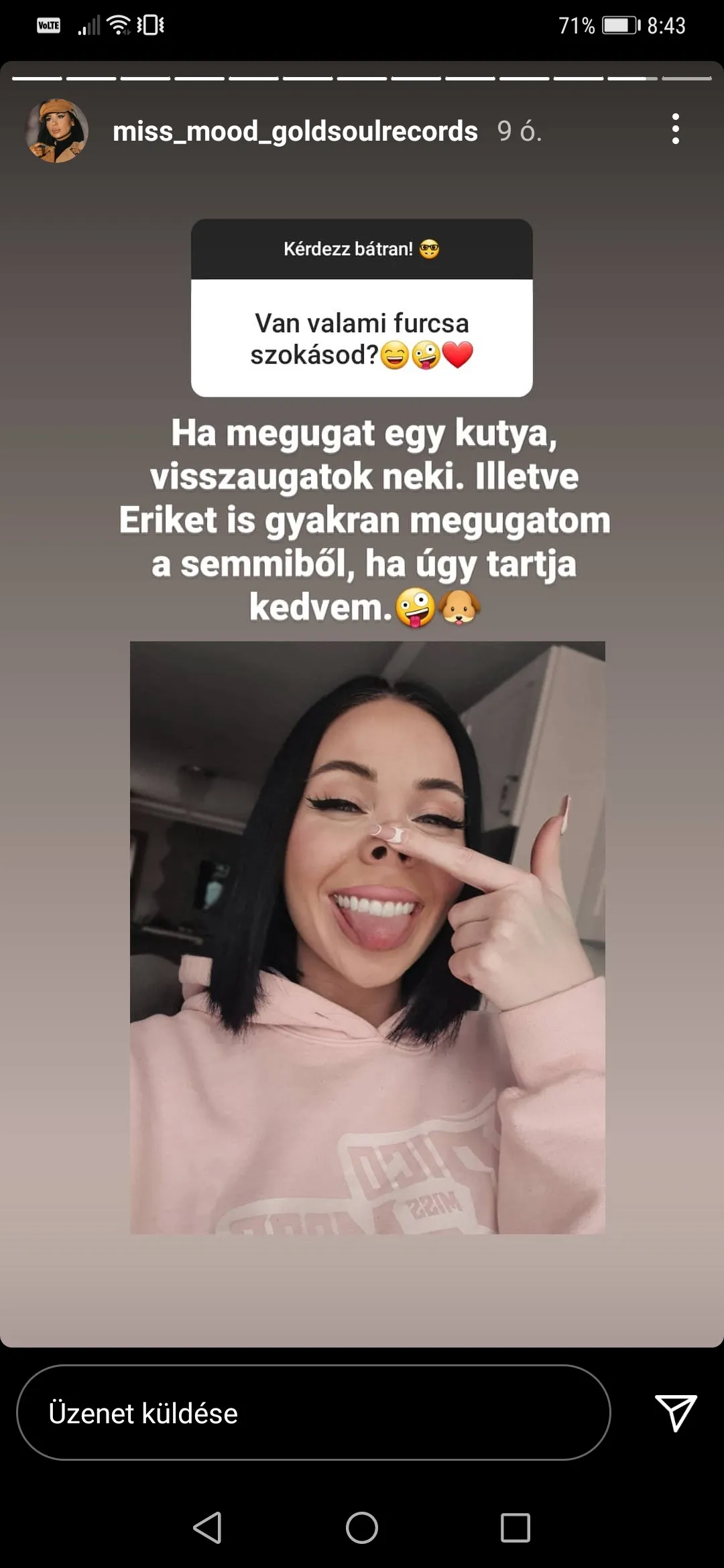 Miss Mood követői sem igazán értették a dolgot, de arra a kérdésre, hogy milyen furcsa szokásai vannak, kapásból ezt válaszolta.