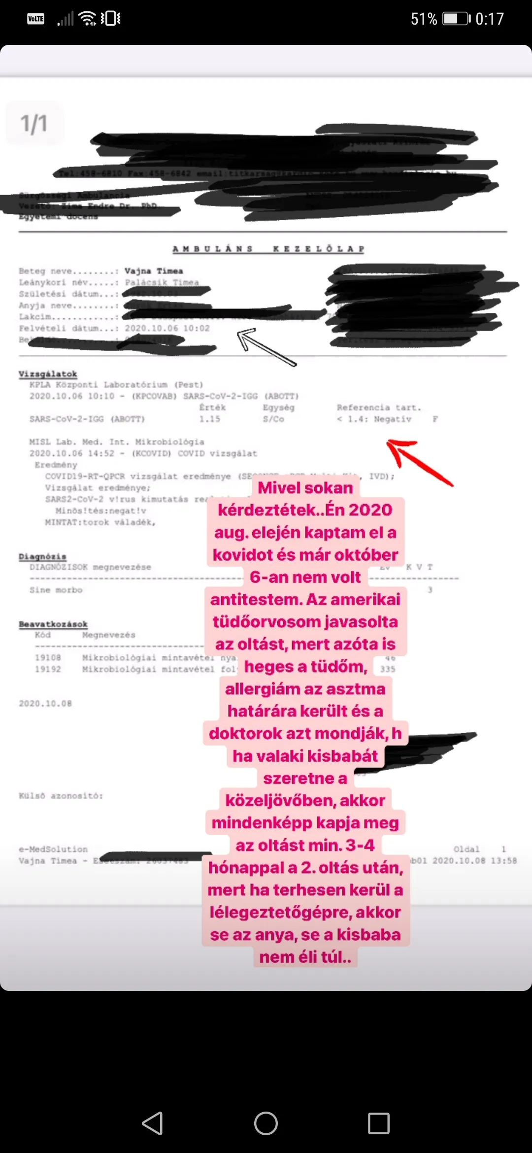 Emiatt adatta be magának a koronavírus elleni oltást Amerikában, mert az orvos azt javasolta, ha a közeljövőben babát szeretne, ezt meg kell tennie. Timi egyszer már elkapta a vírust, a tüdején még mindig hegek láthatók, így a szakember szerint, fontos volt az oltás, hiszen egy későbbi fertőzésnek akár tragédia is lehet a vége, főleg, ha a kismama és a gyermek is lélegeztetőgépre kerülnének miatta.
