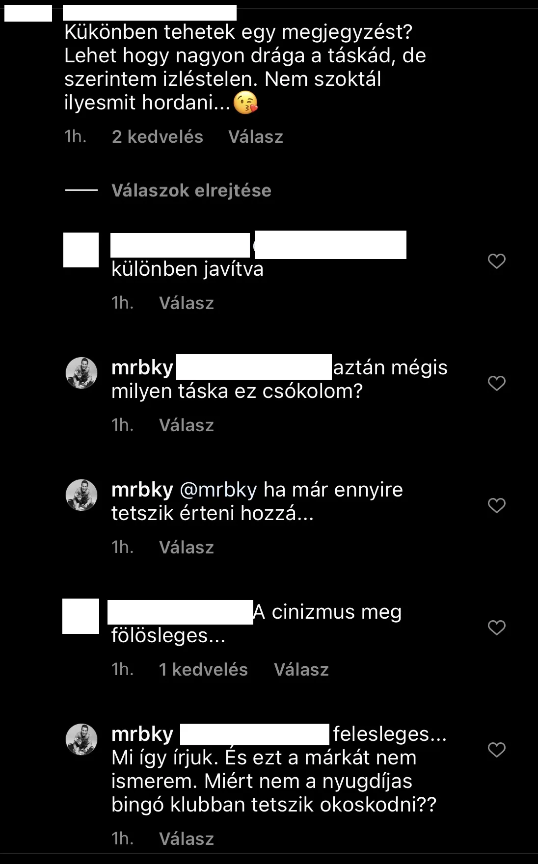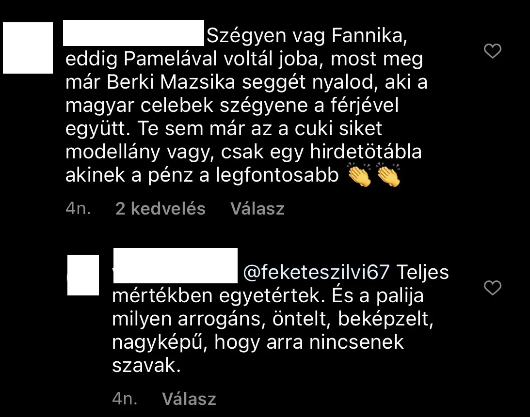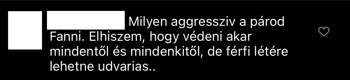 „Milyen aggresszív a párod, Fanni. Elhiszem, hogy védeni akar mindentől és mindenkitől, de férfi létére lehetne udvarias” – írta valaki a párbeszédre.