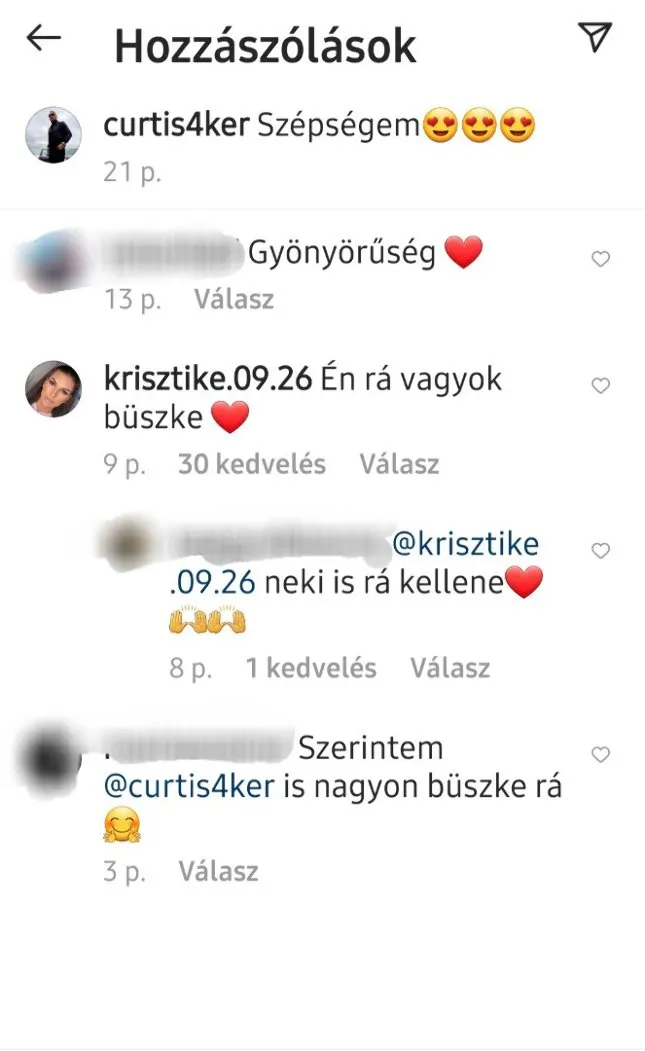 „Én rá vagyok büszke” – írta Krisztike, aki a sokatmondó kommenttel nyilván Curtis új barátnőjére, és arra utalt, hogy a rappernek kire is kéne igazán büszkének lennie..