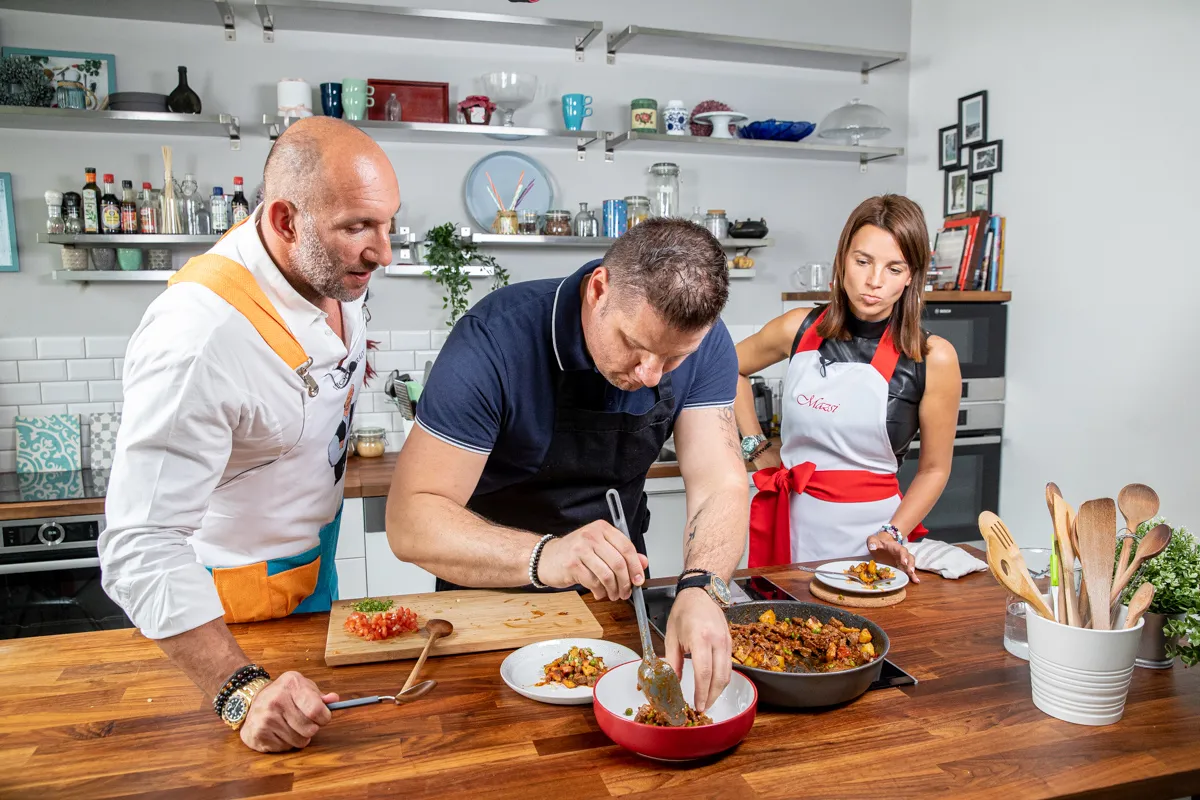 „Norbi azért van itt, mert soha senki munkáját nem veszem el, és aki jobb nálam, azt elismerem, megköszönöm és hálás vagyok neki. A Berkikre mindig Norbi főz! Én voltam az, aki ezt az egész ételt összeraktam, az én fejemből pattant ki az ötlet, elhoztam Norbit, elhoztam a feleségemet és itt vagyok én. Mindig én teszem fel az i-re a pontot” – szögezte le a konyhában sem utolsó izomceleb, akinek az étvágyával sem volt probléma a forgatáson.