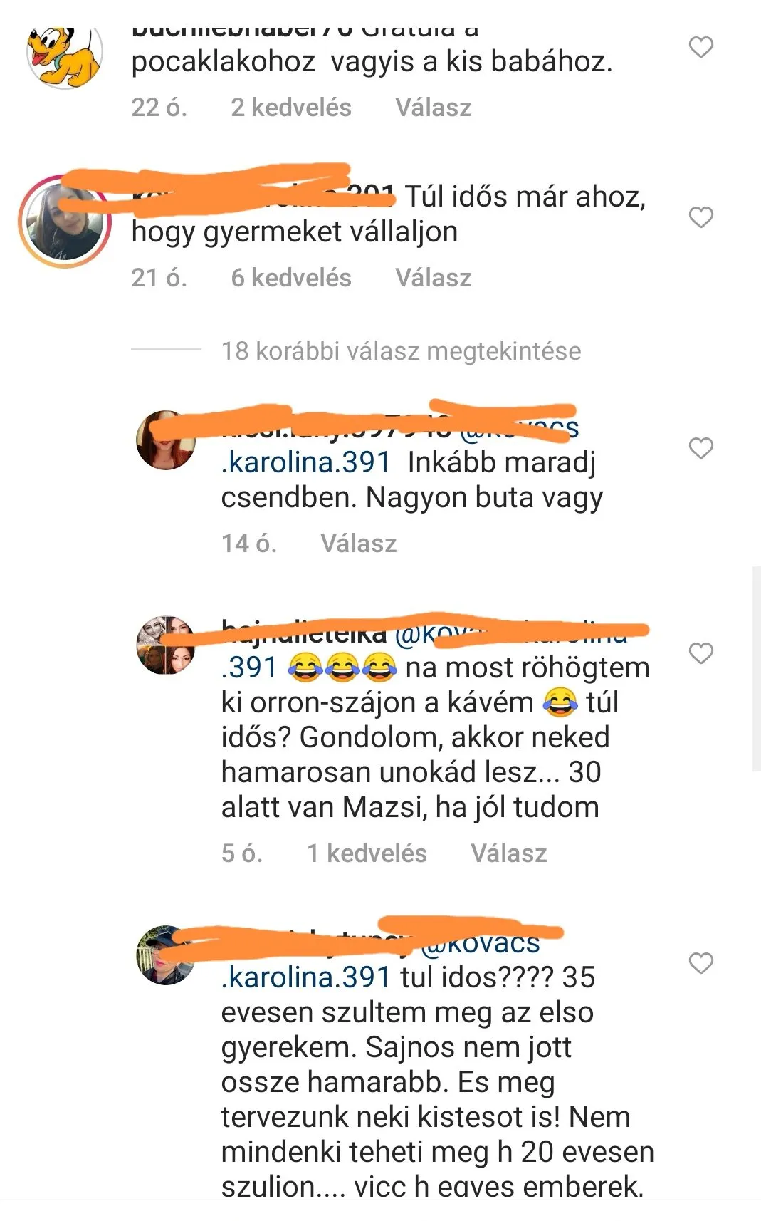 Egy biztos, elnézve a kommenteket, a kismamának nem is kellett foglalkoznia a kéretlen megjegyzésekkel, a követői elintézték egymás között, és megvédték Mazsit.