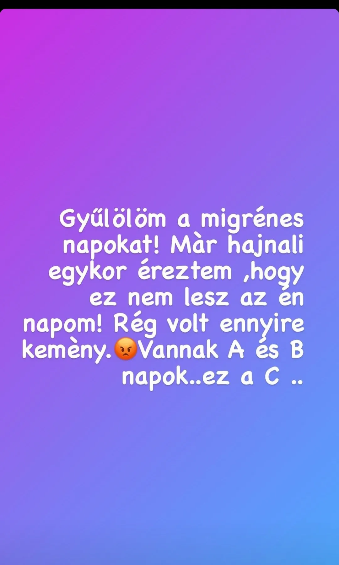 „Gyűlölöm a migrénes napokat! Már hajnal 1-kor éreztem, hogy ez nem lesz az én napom. Rég volt ennyire kemény. Vannak az A és B napok...ez a C” - árulta el Köllő Babett.