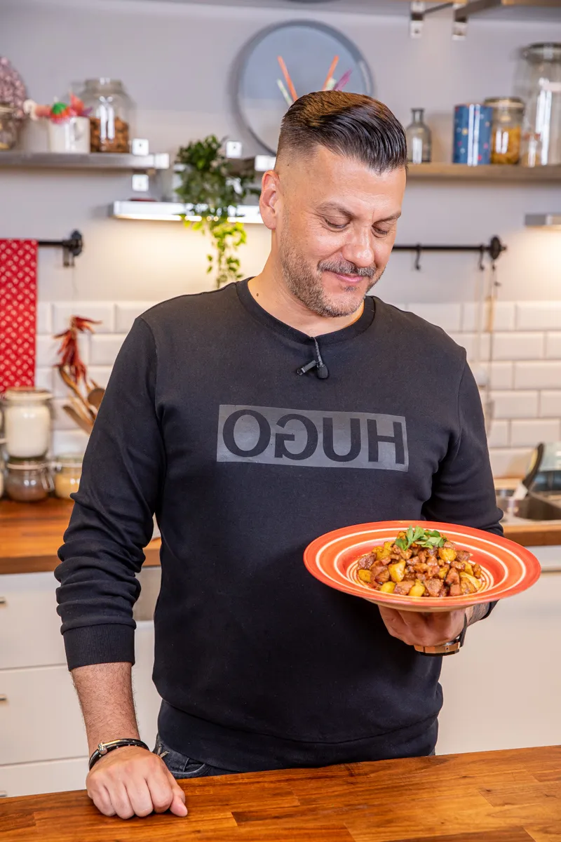 „Hagyományosan nálunk Aranka főz, de én is szívesen beállok a tűzhely mögé. Jellemzően húsételeket és főleg a bográcsosokat készítenek a férfiak. Olyankor összegyűlünk, iszogatunk, zenélünk és jókat eszünk” – mondta Kökény Attila, aki a Mindmegette konyhájában egy gusztusos brassóit készített el. Az énekes elárulta, elengedi a fantáziáját főzés közben, de az is kiderült, hogy van olyan étel, amit a felesége nem hajlandó elkészíteni.