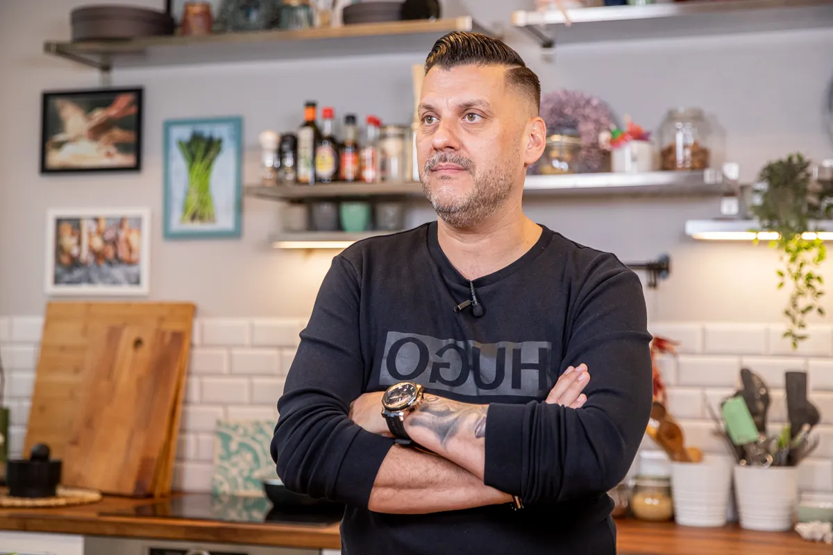 „Nagyon szerettem a konyhában besegíteni a mamámnak. Imádtam a hagyma illatát. Egyik alkalommal szerettem volna hagymát szeletelni, aminek az lett a vége, hogy majdnem levágtam az ujjamat. Végül nem lett nagyobb baj, de egy darab ma is hiányzik a nagyujjamból” – mesélt mosolyogva gyerekkori emlékéről, de kiderült, a baleset ellenére ma is szívesen főz.