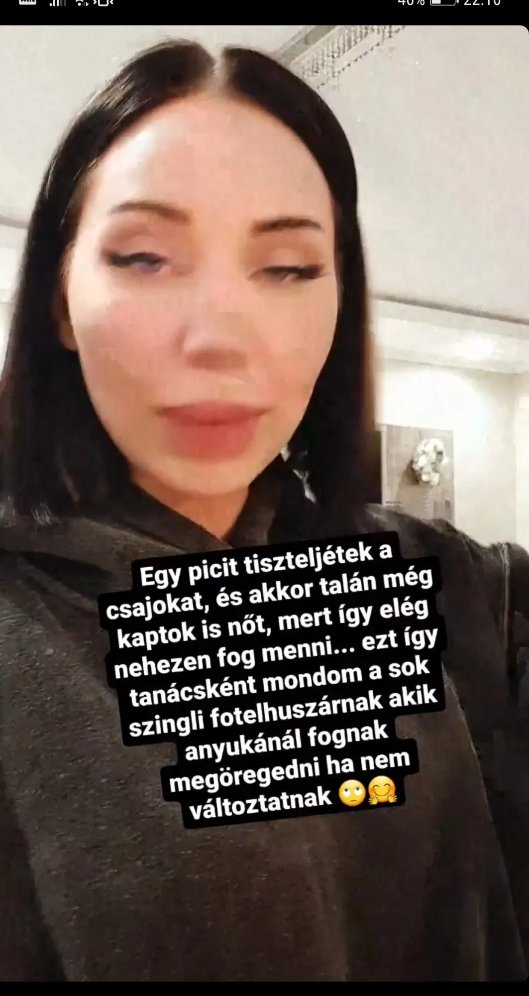 „Egy picit tiszteljétek meg a csajokat és akkor talán még kaptok is nőt, mert így elég nehézen fog menni... ezt így tanácsként mondom a sok szingli fotelhuszárnak, akik anyukánál fognak megöregedni, ha nem változtatnak” - jelentette ki az énekesnő.