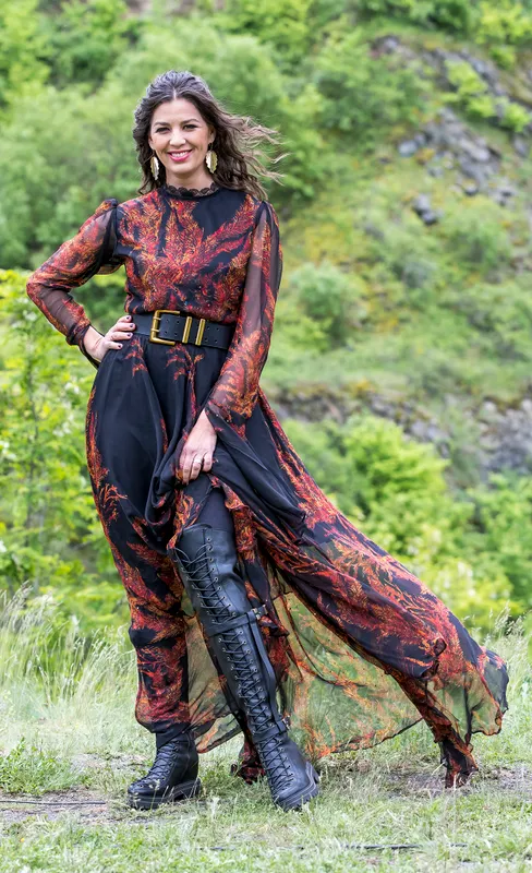 „Nagyon szeretem ezeket a gyönyörű ruhákat. Ezt a stílust is nagyon a magaménak érzem, meg persze a hétköznapokon a farmeros, tornacipős anyuka is én vagyok. Annyira izgalmas, hogy a műsor készítői ilyennek álmodták meg ezt a misztikus hangulatú kalandot, hogy ezekben a hosszú, lenge, finom esésű ruhákban lehessek, amiket gyakran bakancsokkal, terepre szabott lábbelikkel kombináltunk. Holdampf Linda – aki már vagy száz éve öltöztet – pontosan tudja, hogy imádom ezeket a szetteket. Lehettem volna terepruhában is, de ezek a könnyed, estélyi hatású darabok sokkal izgalmasabbak ebben a környezetben, és szerintem sokat hozzáadnak a játék misztikus történetéhez. A Toten-hegyen, egy szarvas és egy farkas totem között kísértem figyelemmel az eseményeket, egy szélcsatorna közepén...földöntúli érzés„ – mesélte Nóra.