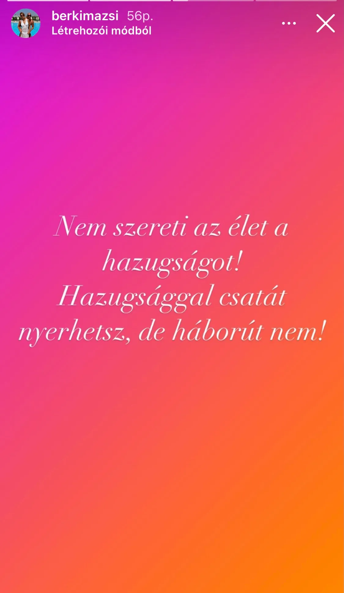 A jelek szerint Mazsi olvasta Pamela bejegyzését, ugyanis rövidesen két insta-sztorit rakott ki. Vajon így üzent a férje exének?