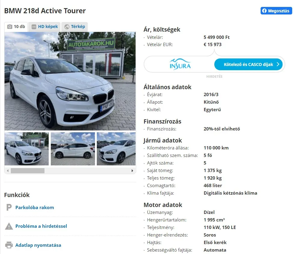 A 2016-ban gyártott, a 110 ezer kilométert futott kocsit közel 5,5 millió forintért árulja a legnagyobb hazai használtautó-oldalon, de az Instagram-oldalára is töltött fel fotókat róla.