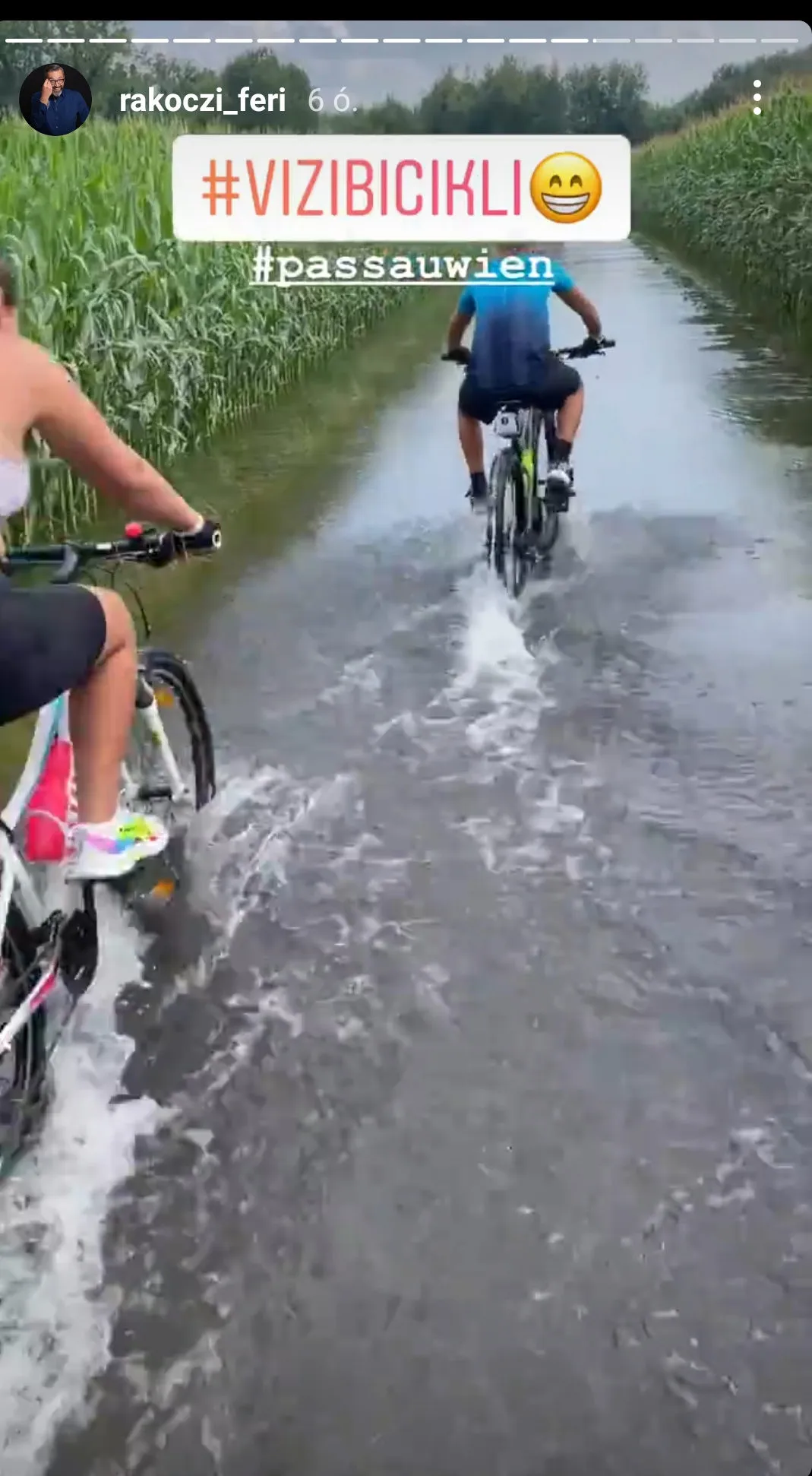 A Rádió1 műsorvezetője legutóbb arról számolt be Instagram-oldalán, hogy a srácokkal hatalmas viharba keveredtek, teljesen bőrig áztak, de az is megesett már útközben, hogy térdig érő vízben kellett bicajozniuk.