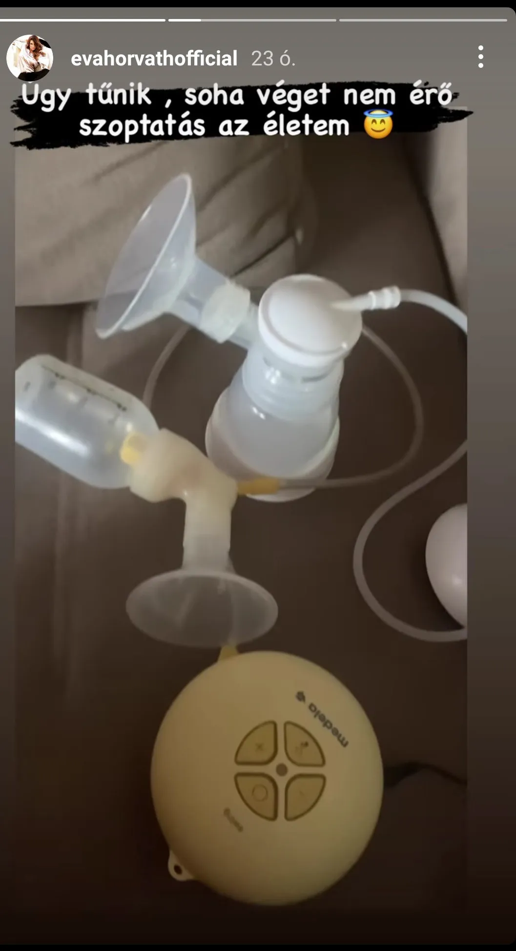 Éva az Instagram-oldalán mondta el, hogy csak úgy mint az első szülése után, most is rengeteg a teje.