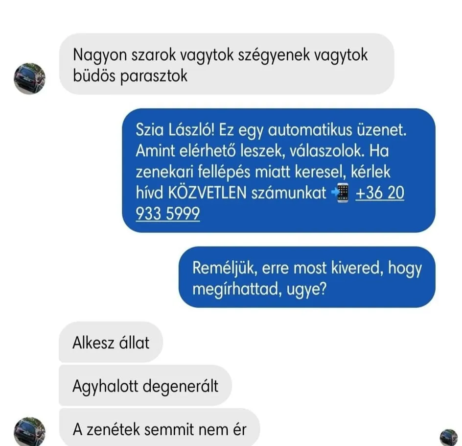 „Nagyon szarok vagytok, szégyenek vagytok, büdös parasztok” – írták a mulatós sztárnak (természetesen vesszők nélkül.)