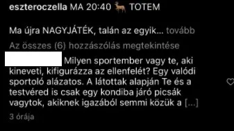 „Milyen sportember vagy te, aki kineveti, kifigurázza az ellenfelét? Egy valódi sportoló alázatos. A látottak alapján te és a testvéred is csak egy kondiba lejáró picsák vagytok, akiknek igazából semmi közük a sporthoz” – írta az egyik követője, akinek a hozzászólása azóta eltűnt az egykori szépségkirálynő oldaláról. Így valószínűleg válaszra hiába vár Esztertől vagy Krisztától.