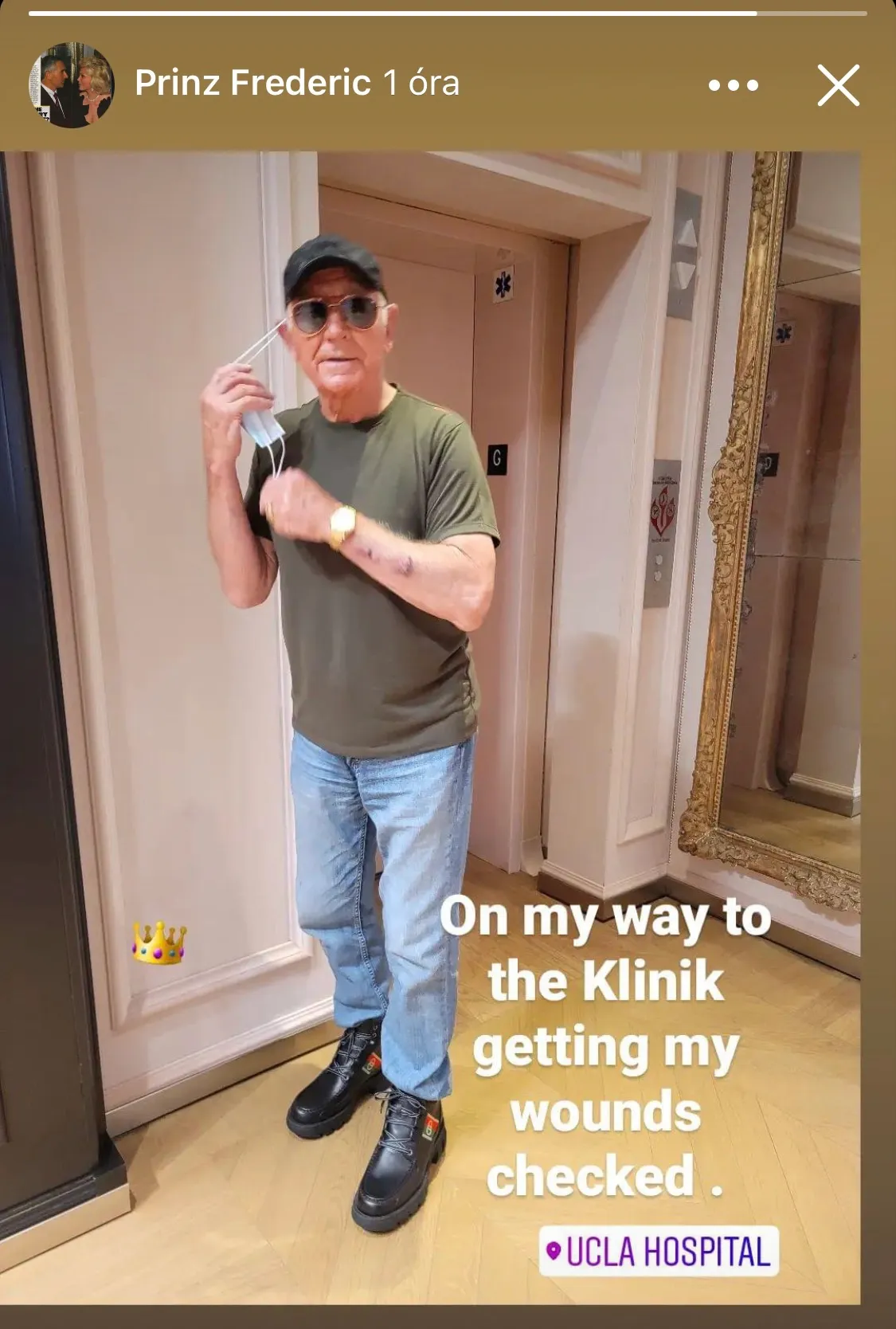 Gábor Zsazsa özvegye, Frédéric von Anhalt egy sejtelmes bejegyzésben adta hírül, hogy orvoshoz siet. A fotón jól látni, hogy a bal karja tele van sebekkel és horzsolásokkal. Ezeket még pár héttel ezelőtt szerezhette, amikor bedrogozva szenvedett balesetet luxusautójával Los Angelesben. Csak a szerencsén múlott, hogy nem történt tragédia. A hírek szerint a bal karja sérült meg: annyira beütötte, hogy elszakadt benne egy izom.