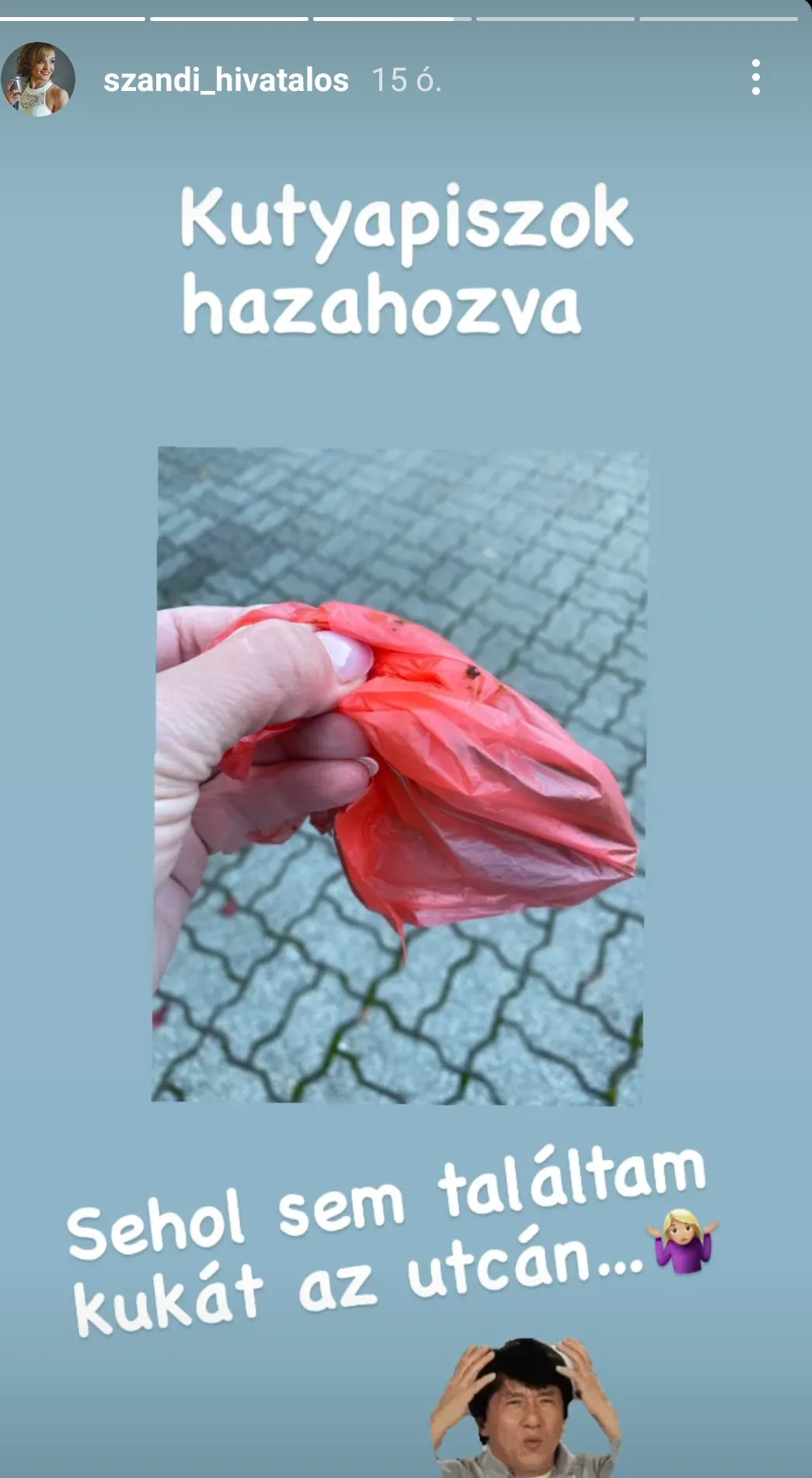 Otthon dobta ki az állati eredetű ürüléket, de a csomagról előtte még készített egy fotót, amit az Instagram-oldalán osztott meg.