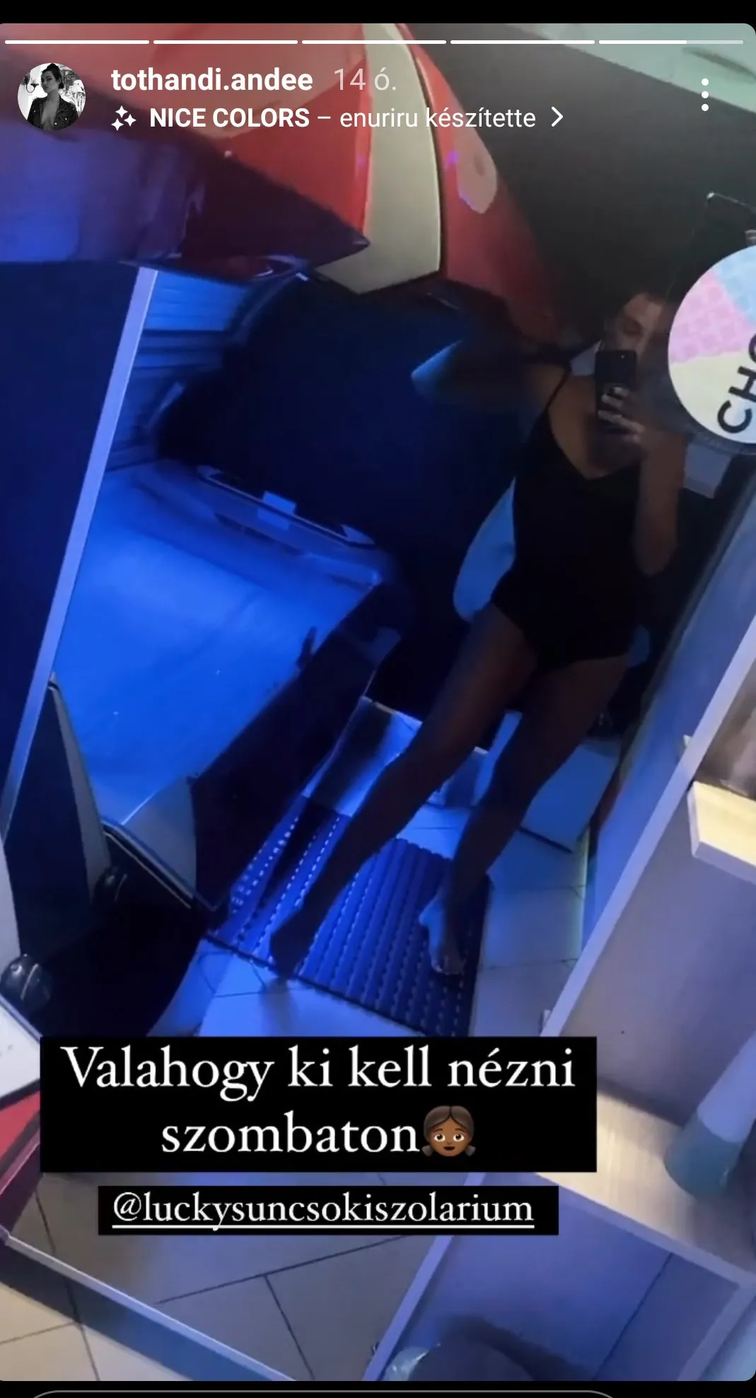 Mos épp egy szoláriumban, fehérneműben szexizett, szerinte ugyanis kell egy kis szín, hogy valahogy kinézzen szombat este. Persze, ha ebben a bodyban feküdt a gépbe, akkor furán barnult le.