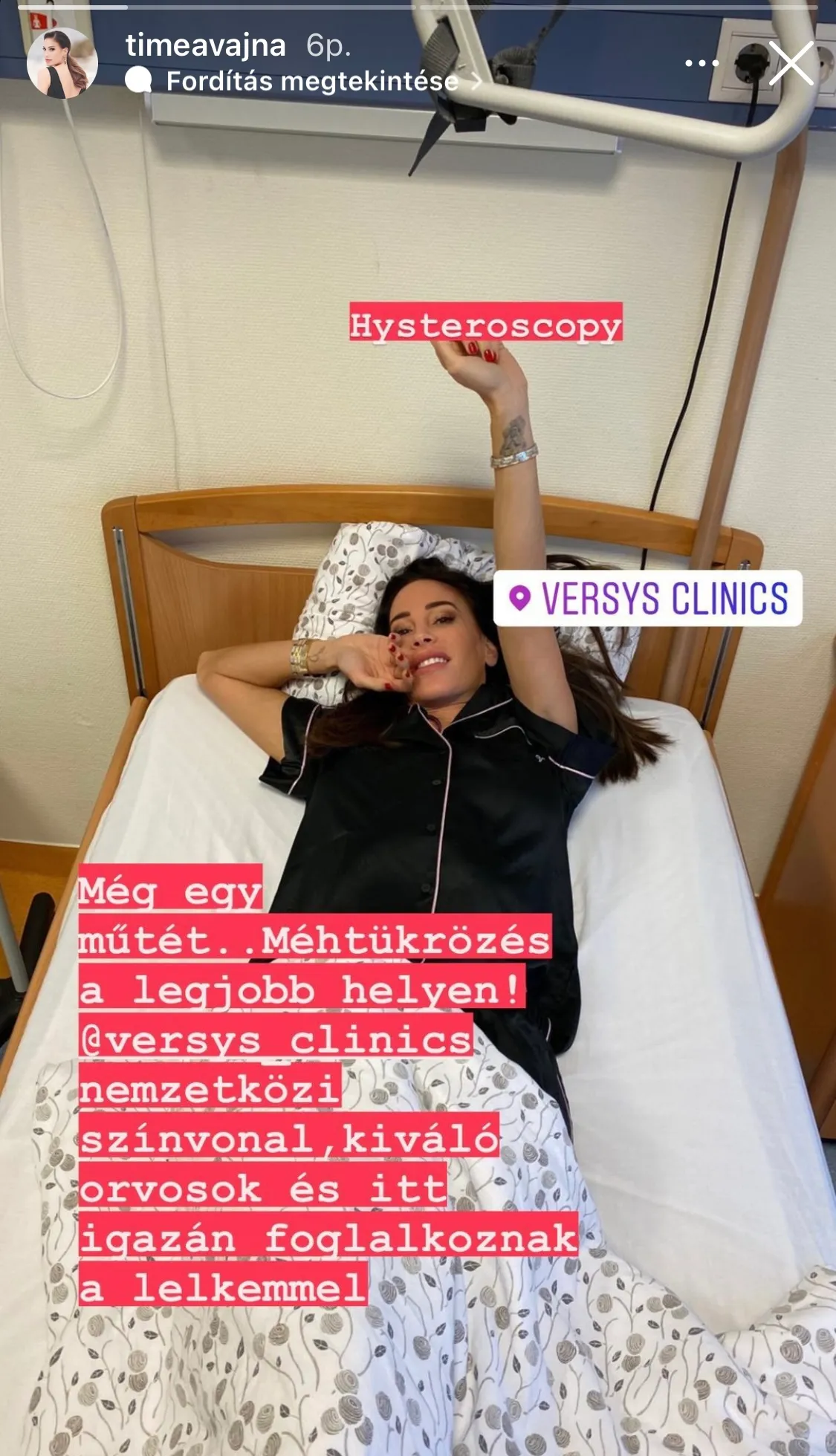 Másfél hónappal endometriózis műtétje után ismét a műtőasztalra kellett feküdnie Vajna Timinek. A csinos üzletasszony jelenleg Budapesten tartózkodik, ezért a magyar főváros egyik klinikáján végezték a beavatkozást. Mint írta, méhtükrözésen esett át.