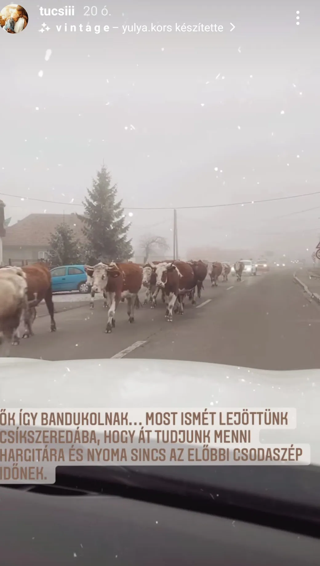 Tücsi azt hitte, hogy ennél nagyobb meglepetésben már nem lehet részük, ám ekkor egy hatalmas tehéncsorda jelent meg a szemközti sávban.