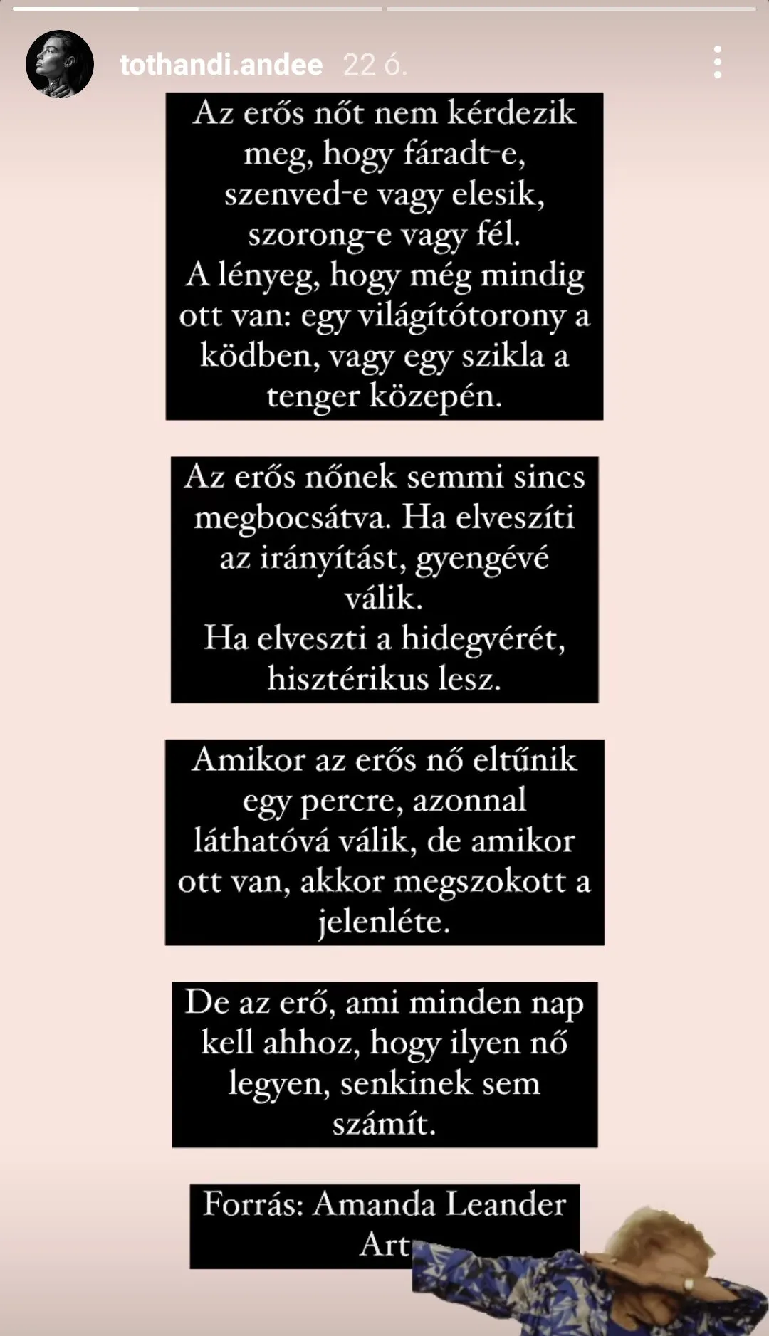 Tóth Andi néhány nagyon mély gondolatot osztott meg az Instagram-oldalán, amiből kiderül, hogy érzi magát mindennap egy erős nő.