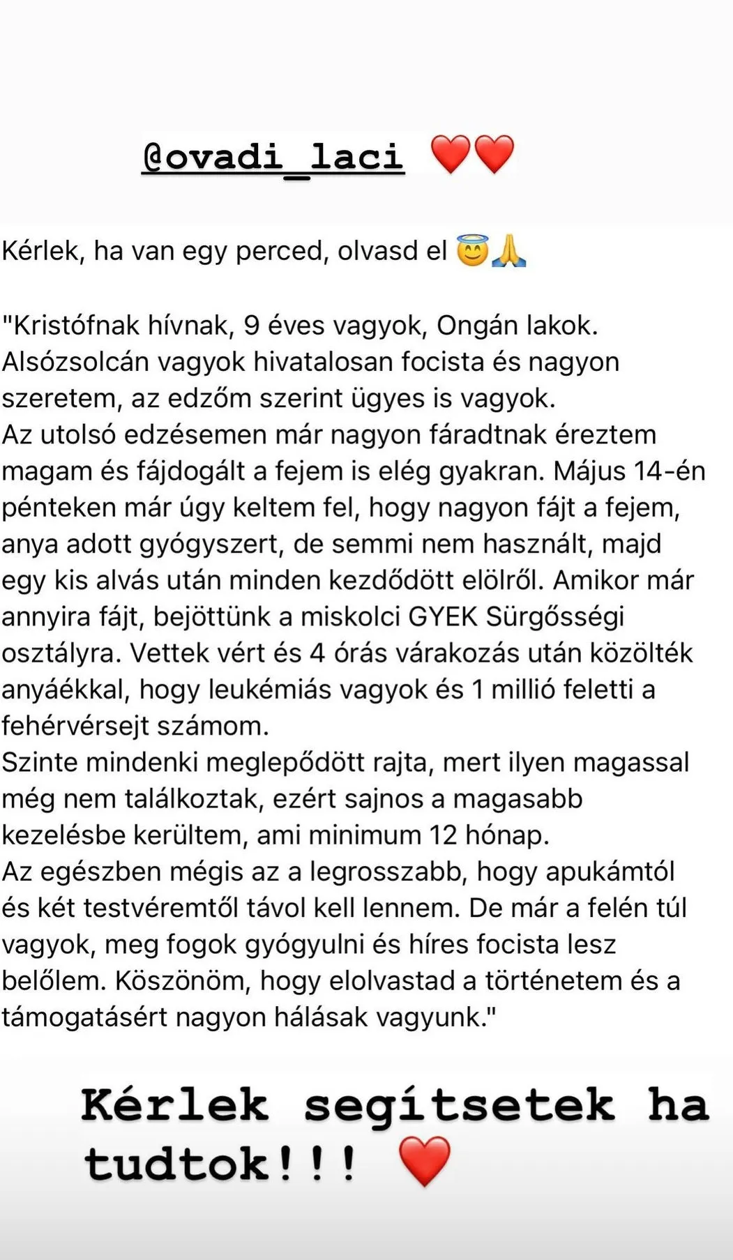 Szabó Ádám mindenkit arra biztat, hogy ha tud, segítsen egy kisfiúnak, aki 9 évesen lett nagyon beteg.