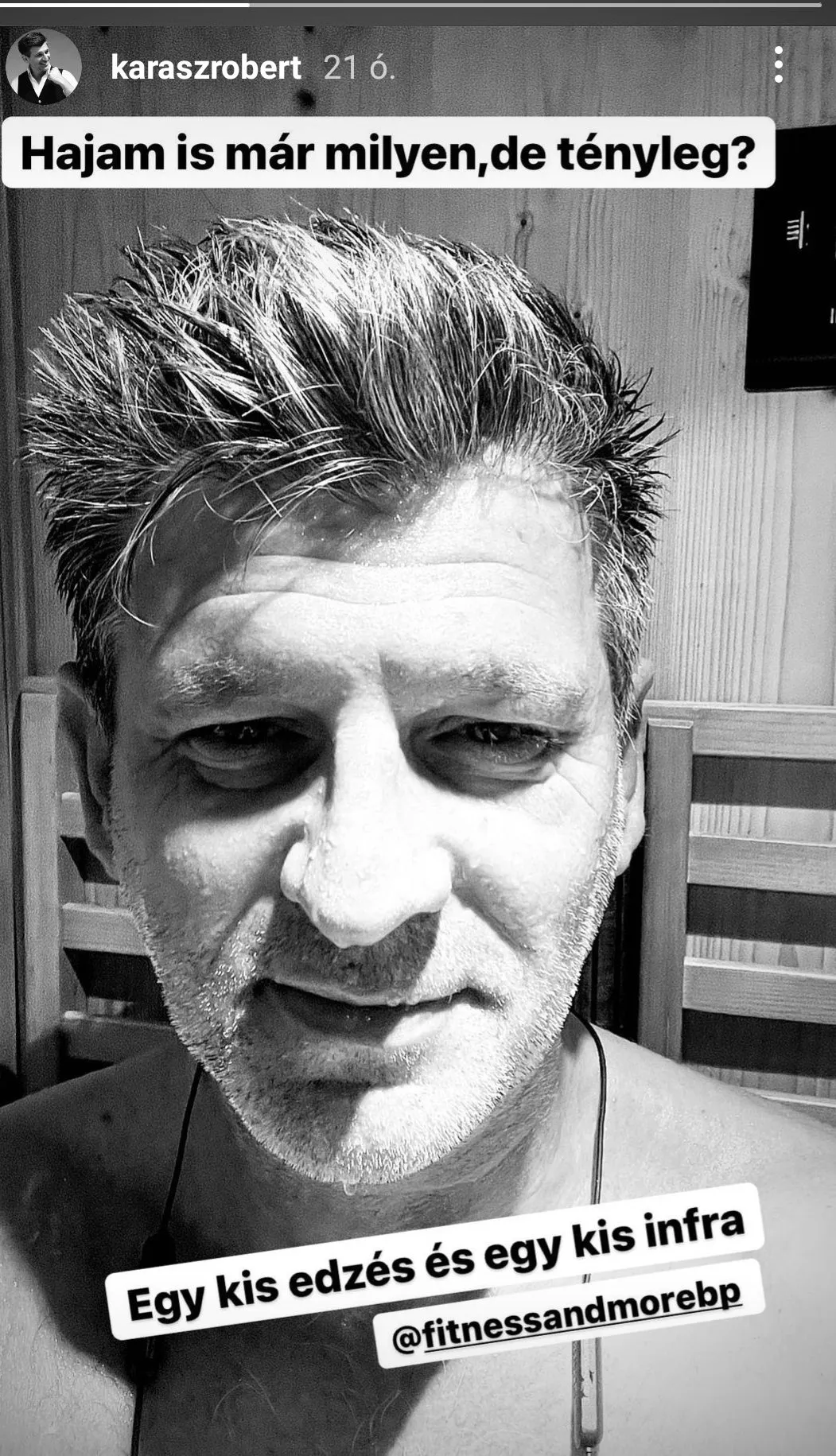 Kárász Róbert tavaly elkapta a koronavírust és lányát is ápolta a betegség miatt. Nem meglepő, hogy az edzés mellett egy kis infraszaunázással is kényezteti szervezetét.