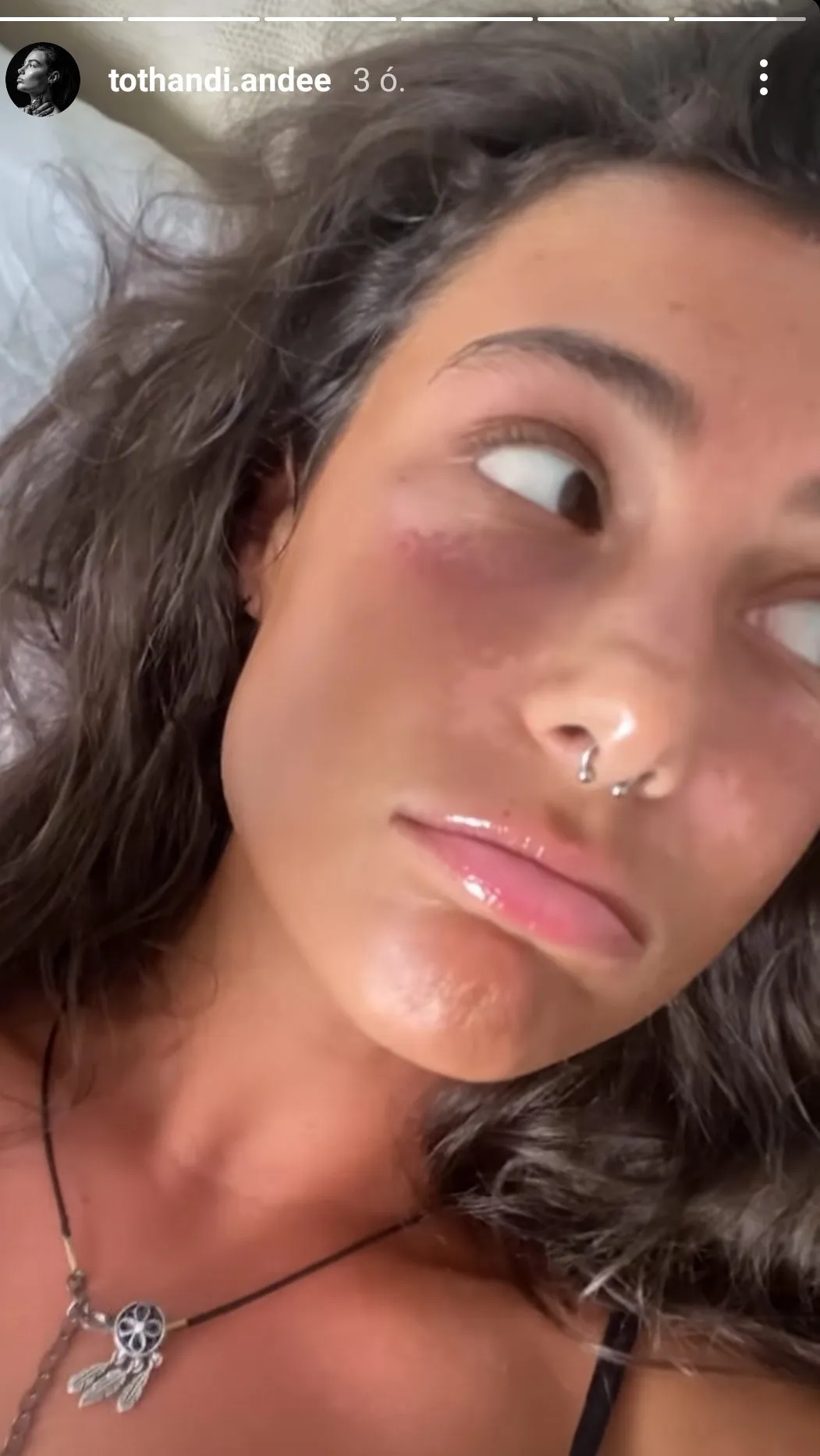 Tóth Andi Instagram-oldalán megmutatta durván leégett arcát, amihez kell némi idő, mire regenerálódik. Jelenleg foltokban hámlik az arcbőre, de a csinos énekesnő ezt is vállalja. Úgy fogalmazott, akkor mostantól foltosbociban tolja, tehát nincs semmi, ami megzavarhatná a pihenésben.