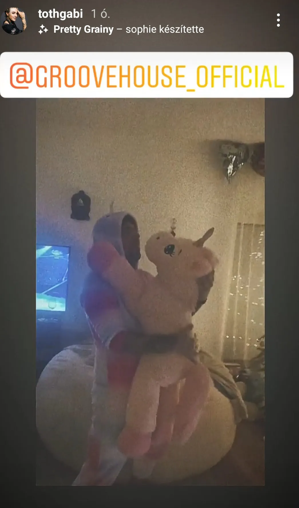 Az énekesnő párja aztán egy pillanatra kivetkőzött magából, de úgy is mondhatjuk, hogy szó szerint beöltözött és egy unikornist puszilgatva indult lefeküdni.