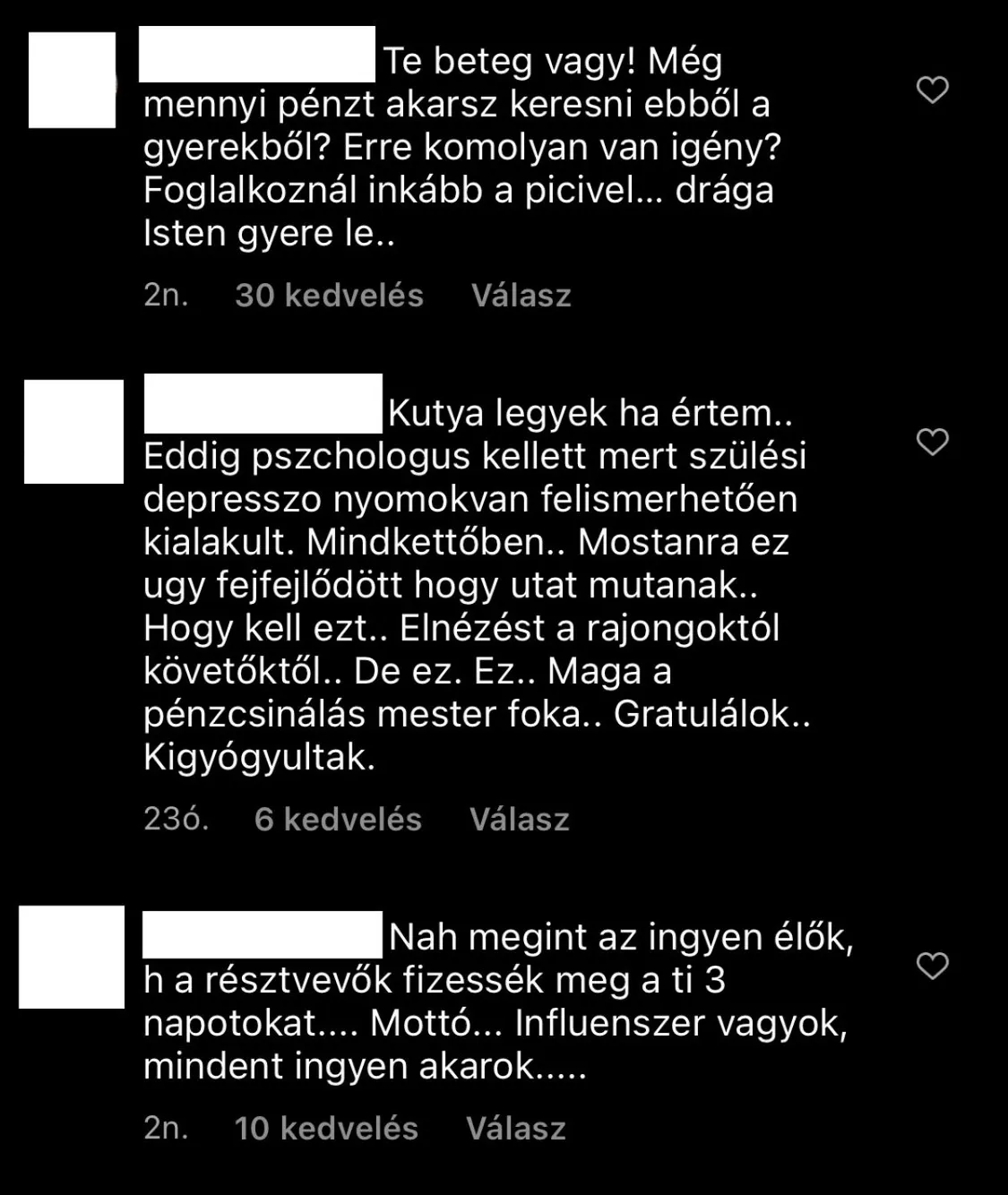 "Kutya legyek, ha értem. Eddig pszichológus kellett, mert szülési depresszió alakult ki. Most már utat mutatnak. Ez a pénzcsinálás mesterfoka. Gratulálok."