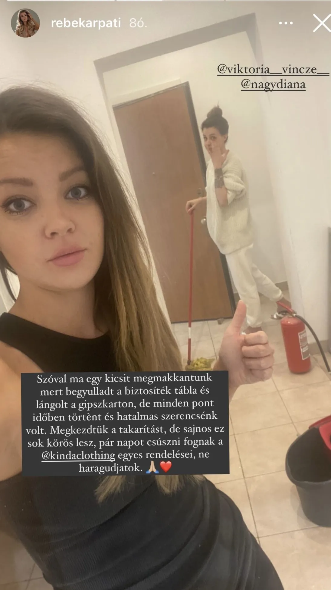 Nagy volt a riadalom Kárpáti Rebekáéknál! A fiatal üzletasszony hétfőn este adta hírül, hogy felcsaptak a lángok az irodában. Váratlanul kigyulladt a biztosítéktábla, a tűz pedig átterjedt a gipszkartonra is, de végül hamar sikerült eloltaniuk a tüzet, és nagy kár sem keletkezett az ingatlanban.