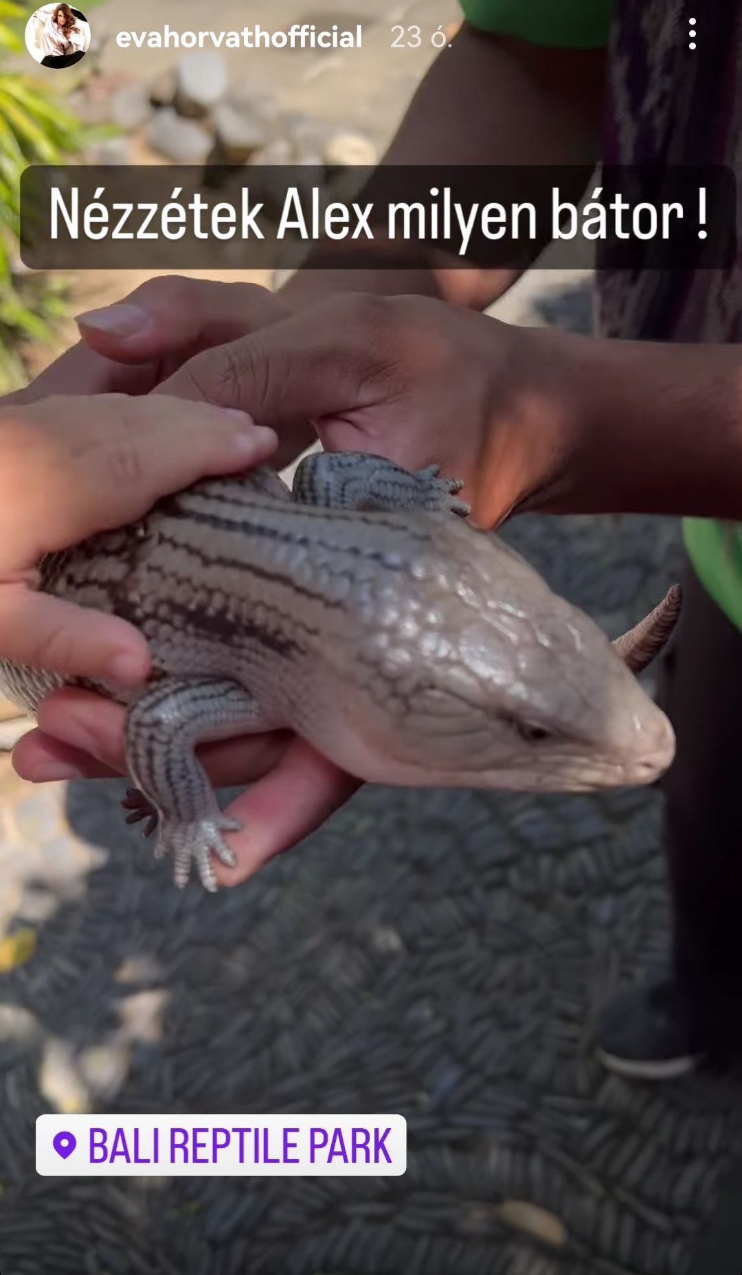Azaz csak a műsorvezető kisebb fia, Alex volt ilyen bátor, aki megtapogatta a hüllő nyirkos hátát, amiért a helyiek is megcsodálták.