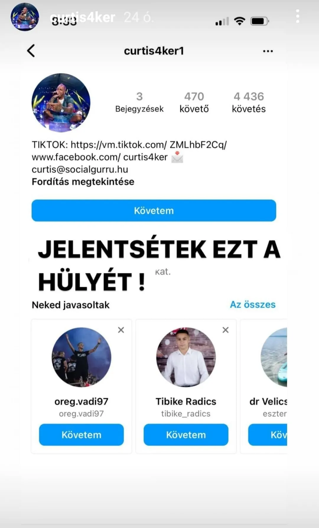 Curtis joggal akadt ki teljesen, ugyanis azzal kellett szembesülnie, hogy valaki lenyúlta a fotóit és létrehozott egy kamu Instagram-profilt a nevével. Ez már csak azért is aggasztó, mert bár az ál-Curtisnek még csak 3 bejegyzése van, máris 470 követőt szedett össze, azaz ennyien gondolják azt, hogy valóban a rapper áll a profil mögött.
