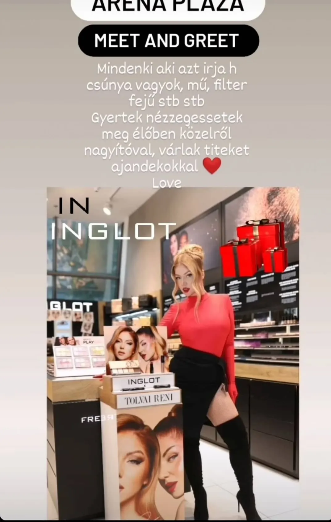 Az énekesnőt többször is titulálták már műnek, ő pedig mesteri módját találta meg annak, hogy visszavágjon. Részt vett ugyanis egy rendezvényen az egyik budapesti plázában, az eseményt pedig úgy promózta be, hogy minél több embert meghívott a bírálói közül. Hátha a rosszindulatú kommentelőknek megváltozik a véleményük, ha élőben látják.